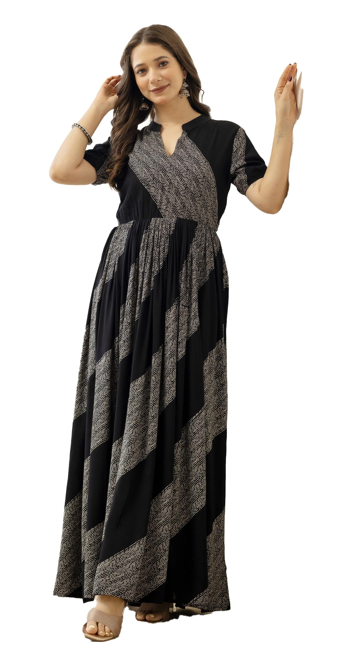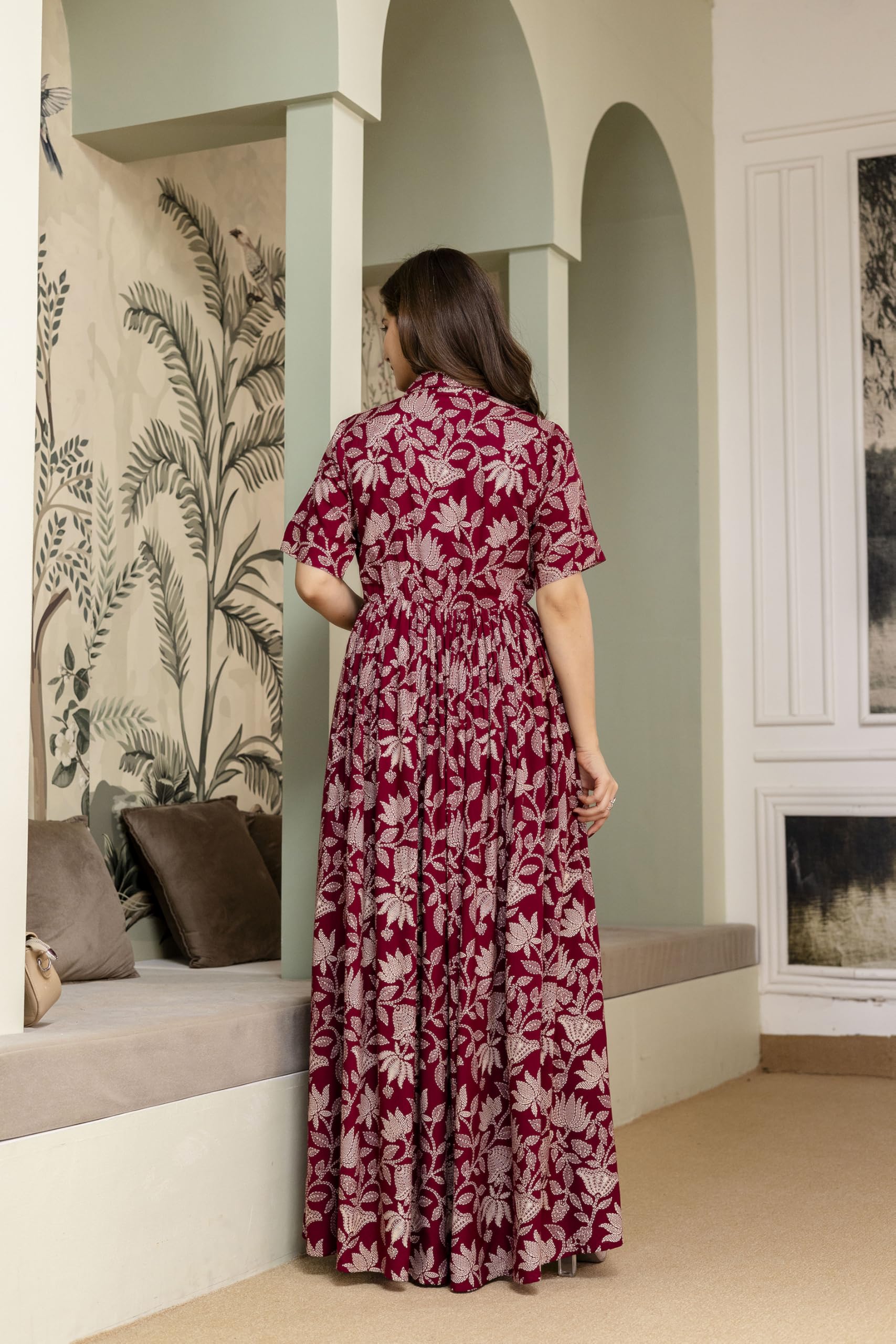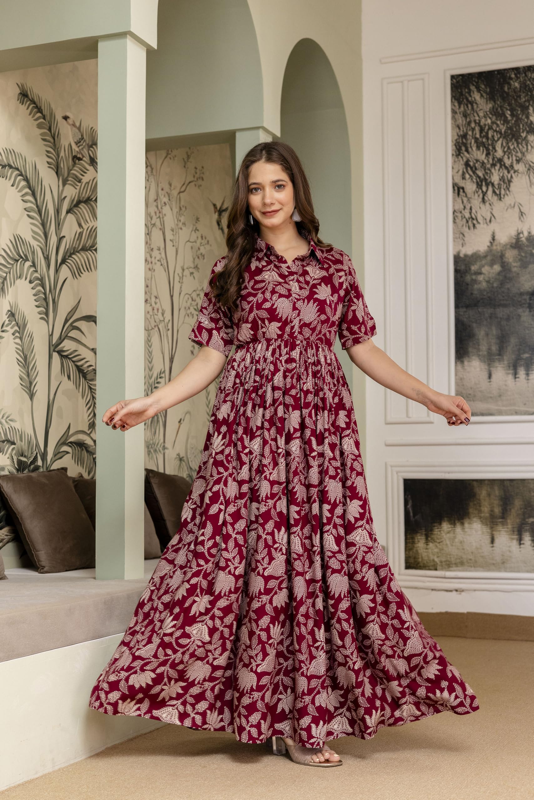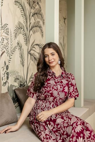 Yash Gallery Women's Rayon Relaxed Fit Anarkali Stretchable Maternity Wear Floral Printed Maxi Dress